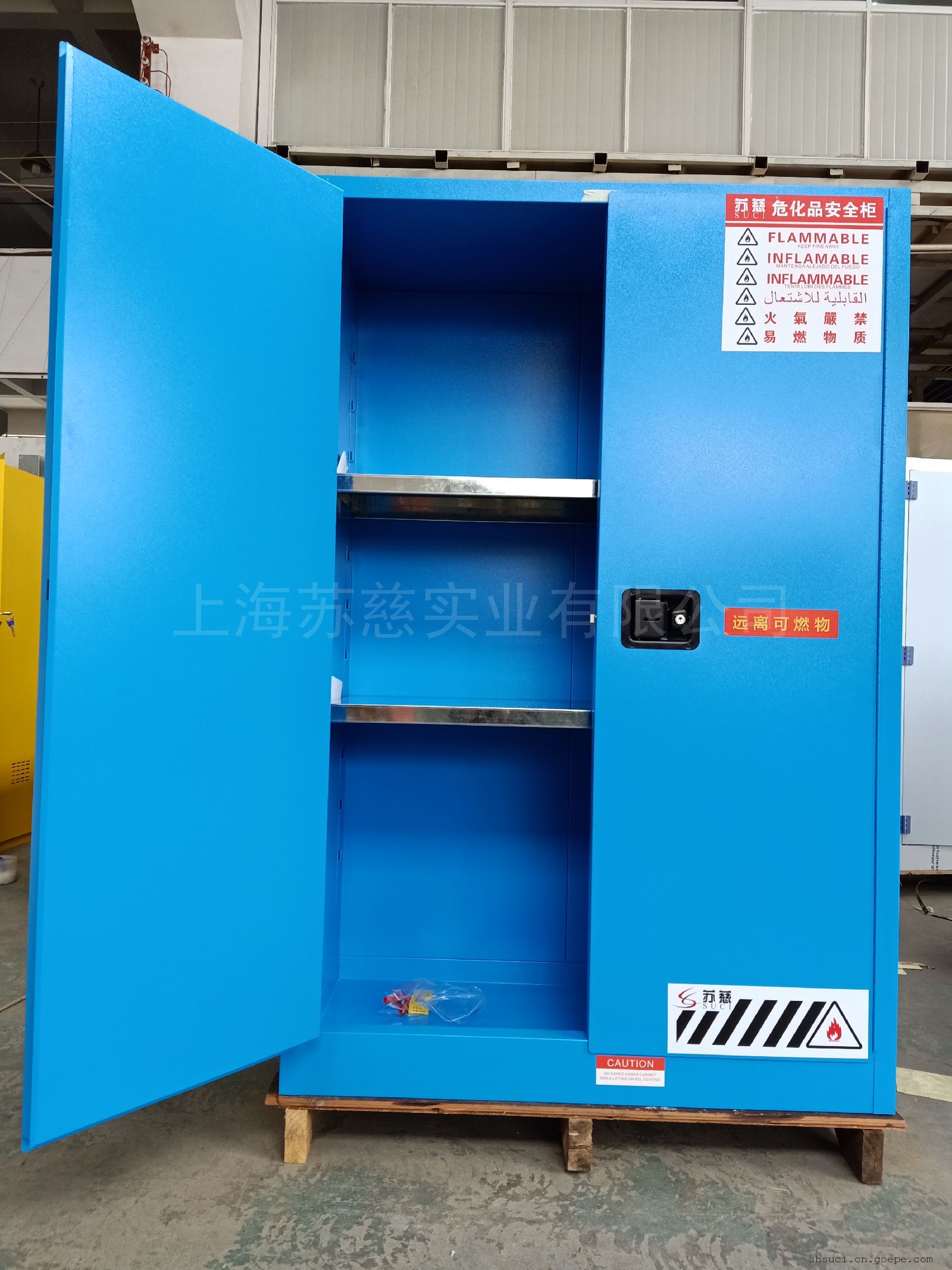 苏慈系列化学品安全柜用于规范、安全和高效的储存易燃、可燃、腐蚀性的危险品、化学品。安全柜系列产品有黄(黄色指示易燃物品)、红(红色指示可燃物品)、蓝(蓝色指示弱腐蚀性物品)三种颜色,三种颜色的尺寸相同,储放危险品类型不同。